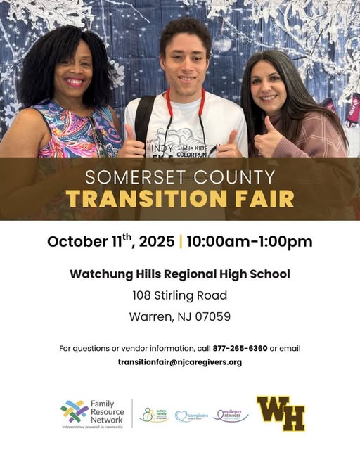 Reminder: Somerset County Transition Fair This Saturday. Saturday, October 11, 2025 10:00am – 1:00pm Watchung Hills Regional High School, Warren, NJ Do you have a high school student with an intellectual or developmental disability who will need support after graduation. This event will help families: - Learn about the transition from children’s services to the Division of Developmental Disabilities (DDD) - Understand the role of Support Coordination - Connect with local service providers in Somerset County Register today: https://bit.