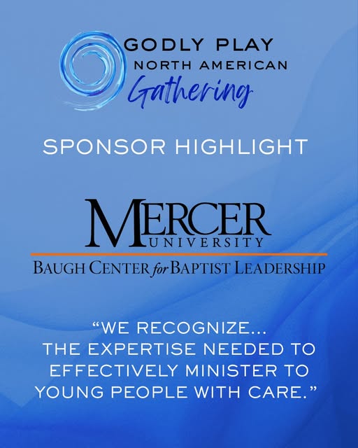 We can't believe it's only a week away before we greet many of you at our Scholar's Dinner. As we prepare for our time in Vancouver to connect and go deeper in our Godly Play practice, we give gratitude for our wonderful sponsors, including the Baugh Center for Baptist Leadership at Mercer University whose commitment to nurturing children's spirituality helped make this year's Godly Play North American Gathering possible. To learn more about the center's work, visit https://baughcenter.