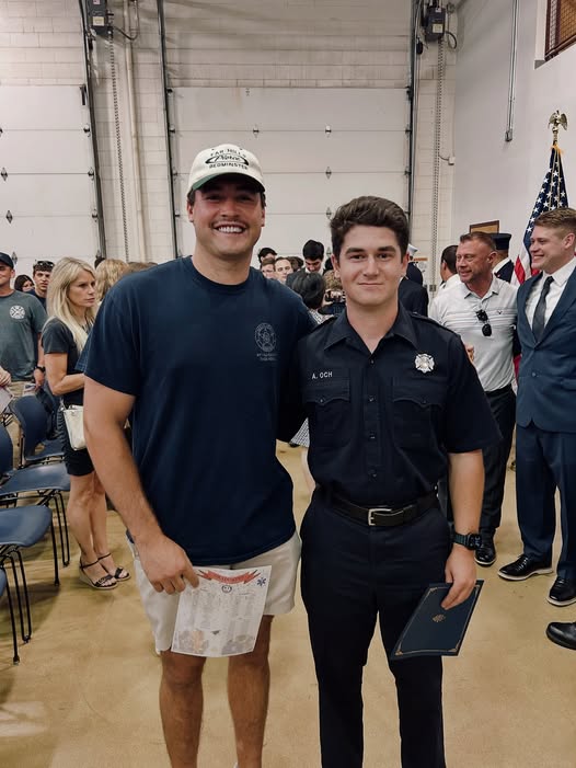 Congratulations to FF Andrew Och for officially graduating FF1 at SCESTA last night. Andrew completed FF1 this spring with many other members from surrounding Somerset County Fire Departments. Pictured is also Captain Will Allen who was Andrewβs mentor through the academy.