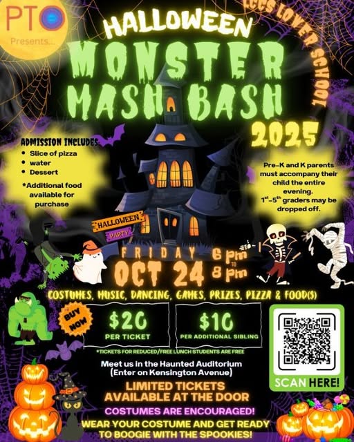 Join us for the LCCS Halloween Monster Mash Bash 2025 — hosted by the PTO. 🕕 Friday, October 24 | 6–8 PM 📍 Haunted Auditorium (enter on Kensington Ave) Enjoy costumes, music, dancing, games, prizes, pizza & more. 🍕 🎟 $20 per ticket | $10 per additional sibling Reduced/free lunch students attend free.