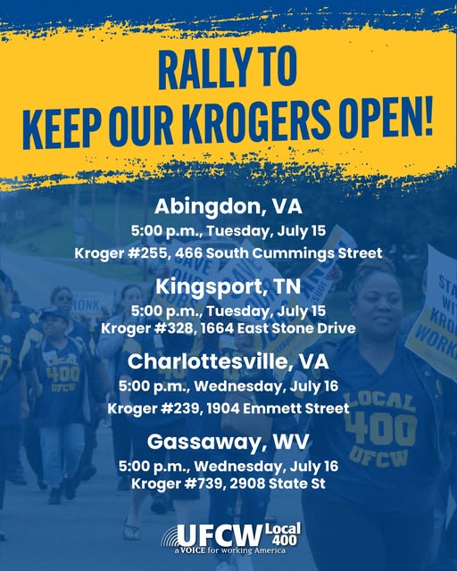 United Food & Commercial Workers Local 400 Union Kroger Roanoke Contract Survey Now Open Take a moment to complete our Contract Survey ahead of negotiations on our next union contract. Local 400 Rep Raises Money to Help Union Members in Need Our very own Linnette Floyd put together an outstanding team and raised more than 1100 for the 2025 Bowling for Gold charity tournament. Workers Win Settlement With MOMs Organic Market Over Unlawful Discrimination Against Union Supporters The 17302. 67 settlement with the company compensates 74 victims who were unlawfully denied pay increases after unionizing.