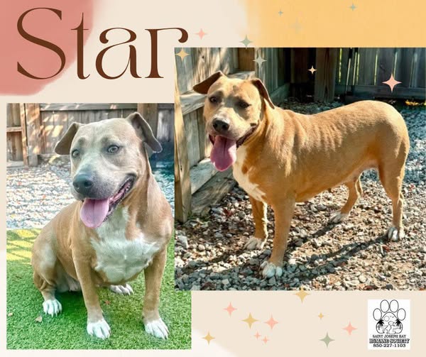 Meet Star ⭐️ She’s a quiet companion with a heart full of love. She adores affection and enjoys peaceful walks. She’s 2 1/2 years old, 54 pounds, already spayed, microchipped, heartworm negative, and up to date on all vaccinations—ready to go home today.