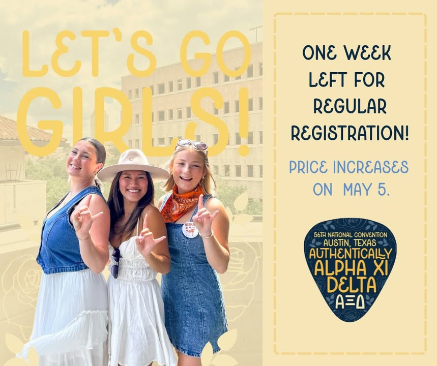β¨ Ready for the summer of a lifetime. β¨ Join us July 2β6 at Alpha Xi Deltaβs National Convention. Reconnect with Sisters, create unforgettable memories, hear from inspiring speakers, and celebrate everything that makes the Alpha Xi Delta experience uniquely authentic.