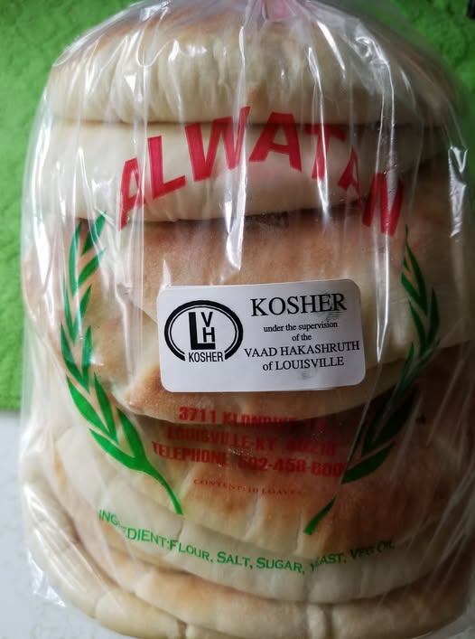 The Louisville Vaad HaKashruth is proud to announce that the PITA BREAD made at Alwatan Bakery at 3711 Klondike Lane is now under our supervision and is Kosher-Pareve (Pas Akum). Only the packages bearing the Vaad Label should be purchased. Currently the Zatar Spices are not kosher and should not be purchased.