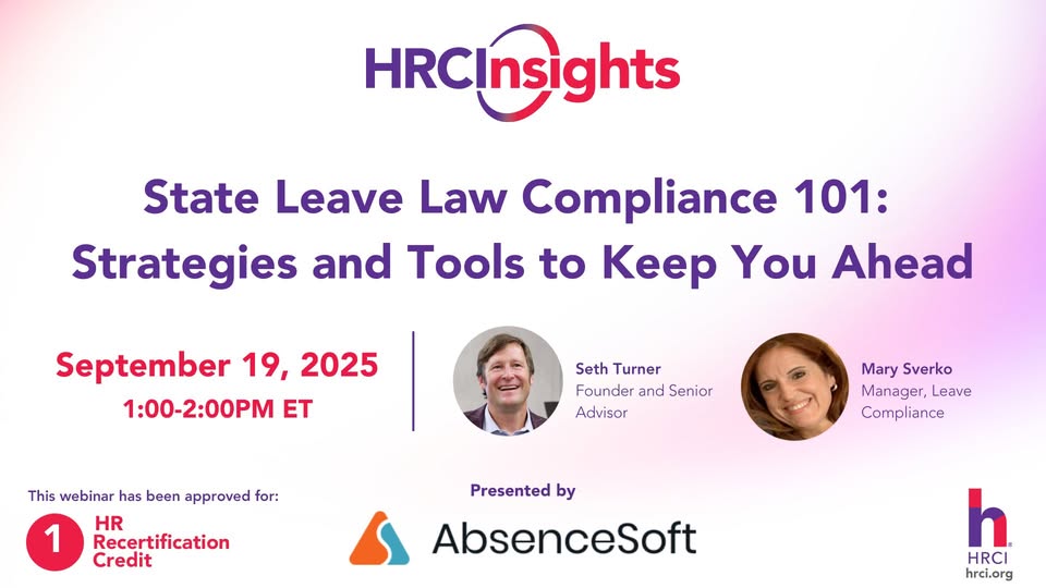 This session maps the current landscape, shows why overlapping state, local, and federal rules create pitfalls, and explains what makes California, New York, and Washington especially challenging. Join Seth Turner and Mary Sverko from Absencesoft on September 19 at 1 PM ET for practical ways to tighten policies and workflows, spot common gaps, and make small changes that reduce risk and workload. Register at https://ow.