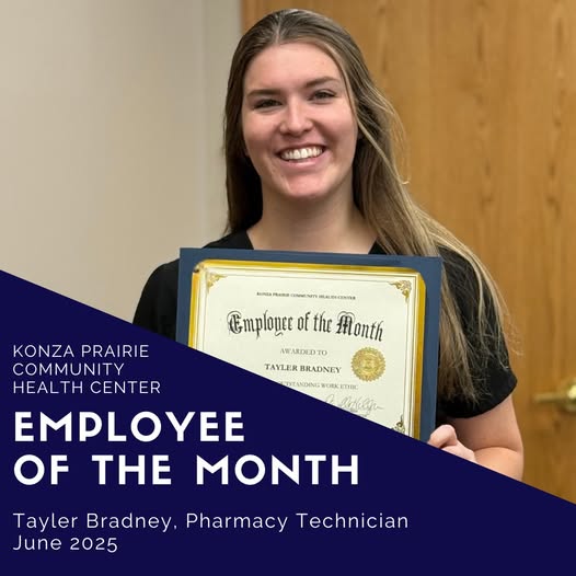 Congratulations to Tayler Bradney - Konza's employee of the month for June. As a pharmacy technician, Tayler consistently shows up each day with a positive attitude and a stong commitment to excellence. She routinely goes above and beyond to find ways for patients to save money, all while maintaining a sharp focus on patient care and organizational efficiency.