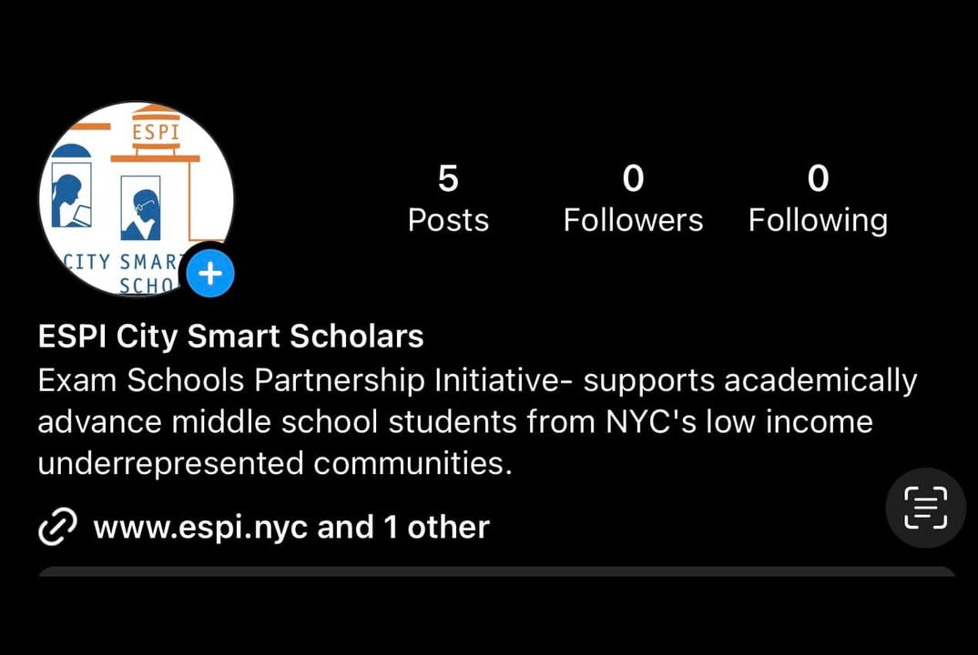 Exam Schools Partnership Initiative ESPI CITY SMART SCHOLARS A program to support academically advance middle school students from NYCs low income underrepresented communities Exam Schools Partnership Initiative co Andy McCord 230 W 105th Street 13BNew York NY 10025212 7298881 infoespi. nyc HomeAbout UsOur Mission Our WorkApplyContact Us Follow . .