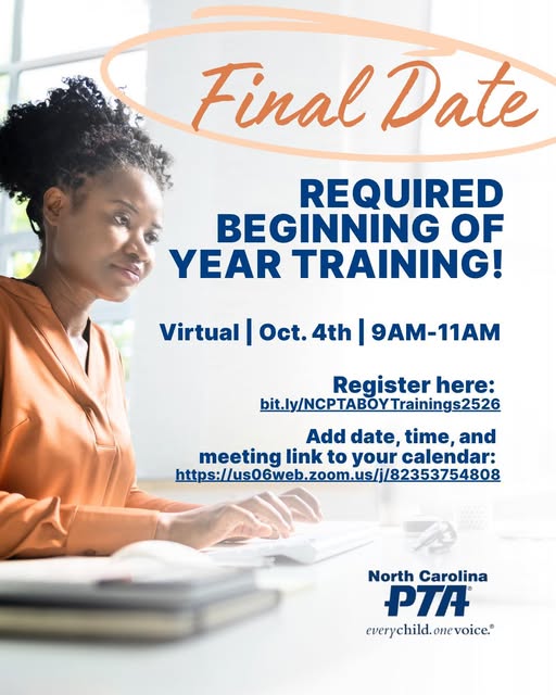 North Carolina PTA - every child. one voice. NCPTA IS EXCITED TO ANNOUNCE CONVENTION 2025. MARK YOUR CALENDAR. MOY Leadership Training NCPTA is seeking advocates ready to join our working board. We are looking for If one or more of the above describe you apply today.
