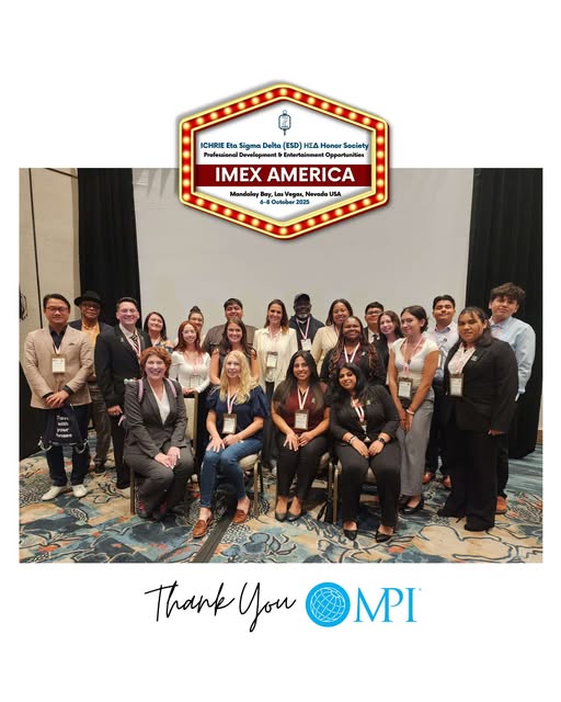 🎓✨ Thank you to MPI and IMEX for an incredible opportunity. Eta Sigma Delta (ΕΣΔ) students were honored to attend the MPI MICE Certification course last week in Las Vegas during IMEX. The 4-hour program featured expert-led sessions, networking, and valuable insights into the Meetings, Incentives, Conferences & Exhibitions (MICE) industry.