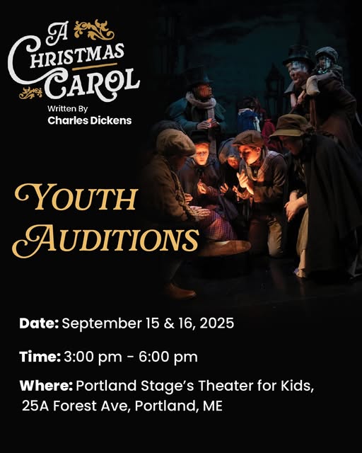 Youth Auditions. 🌲❄️ Audition for the Young Performers Ensemble of Portland Stage’s upcoming production of A Christmas Carol, which will run from December 6th through December 24th, with rehearsals starting in early November. The beloved holiday classic adapted right here at Portland Stage returns for the 2025 season, directed by Education Director, Michael Dix Thomas.