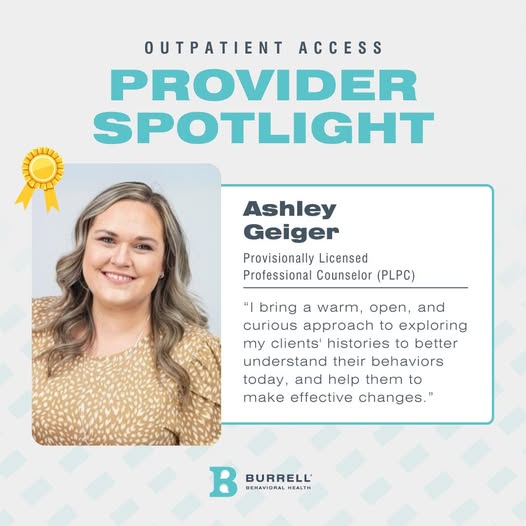 Meet Ashley Geiger, PLPC, one of the dedicated therapists at our Ash Street Clinic in Columbia. โI enjoy helping the client connect how their โthen and thereโ (past) affects their โhere and nowโ (present). I bring a warm, open, and curious approach to exploring my clients' histories to better understand their behaviors today, and help them to make effective changes.