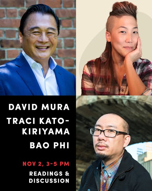On Nov 2, we're gathering Asian American luminaries. Join us for a free reading and discussion with David Mura, traci kato-kiriyama, & Bao Phi as they look at how art and activism show up now in the intersection and continuum of their work and communities. Learn more and save your spot at the link in the comments.