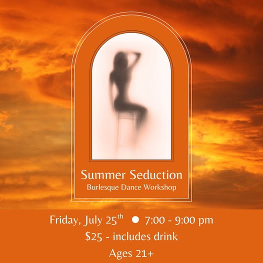 Get ready to turn up the heat with Summer Seduction, a one-night-only burlesque-inspired dance workshop with Claire—where playful meets powerful, and the vibe is pure summer magic. This is your popsicle melting moment: sticky-sweet, sun-drenched, and irresistibly bold. Slip into something that makes you feel fabulous (no clothes need to come off—we’re all about confidence, not stripping), grab a cocktail, and learn a sultry, summer-themed routine that celebrates body confidence, boldness, and pure fun.