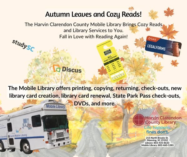 The Harvin Clarendon County Library has over 45,000 books, audiobooks, and movies.
