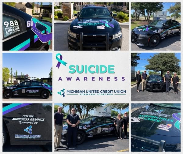 π Michigan United Credit Union is proud to stand with the Auburn Hills Police Department, @onadragonflyswings, and @hugsfromdavid to raise awareness for Suicide Prevention. If youβre struggling, please know β youβre not alone. π Call, π¬ Text, or π» Chat 24/7: π² Dial 988 β Suicide & Crisis Lifeline Letβs break the silence.