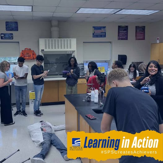 It's week two and instruction is in full swing across the division. Students in the Project Lead The Way Biomedical Sciences program at Lakeland High School are diving into forensic science— analyzing, observing and taking notes during a mock crime scene investigation. #SPSCreatesAchievers #LearningInAction.