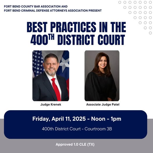 Fort Bend County Criminal Defense Attorneys Association - Home Upcoming events Follow Us FORT Bend County Criminal Defense Lawyers Association CONTACT US TheFort Bend County Criminal Defense Attorneys Association Inc. FBCCDAA is an association for criminal defense attorneys in Fort Bend County Texas. FBCCDAA is a stateoftheart organization providing assistance support and continuing education to its members. We are proud that our members and speakers are excellent practitioners of the criminal defense profession in Texas.