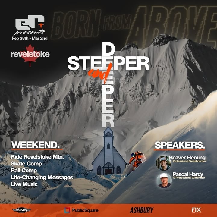 The time has come for Steeper & Deeper 2025. π 3 day weekend: February 28th-March 2nd Elevate your faith in Revelstoke with powerful speakers with life changing messages, live music, epic mountain riding and skate/rail competitions. Last February the Holy Spirit was with us and we felt the mountains move.