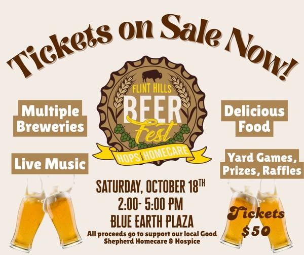 🍺 Tickets are ON SALE NOW for the 6th Annual Flint Hills Beer Fest. 📅 Saturday, October 18 | 2–5 PM 📍 Blue Earth Plaza- Manhattan, KS 🎟 $50 (includes food voucher) Grab your tickets today and join us for an afternoon of beer, live music, and great times—all while supporting Good Shepherd Homecare & Hospice. 🍻 Purchase tickets here: https://goodshepherdhh.