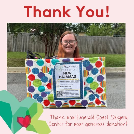 A huge thank you to Emerald Coast Surgery Center for collecting pajamas for the children we serve. 🩵 For many of our kids, these pajamas will be the first brand-new pair they’ve ever owned. Something as simple as a cozy set of PJs can bring comfort and security during a difficult time.