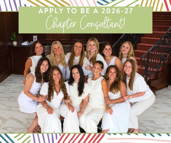 The application for our 2026-27 chapter consultant team is OPEN. Seniors and young alumnae, apply today through the link in our bio to start your career with the organization you love. You'll build key resume skills, assist collegiate chapters, work with sisters from all backgrounds and so much more.
