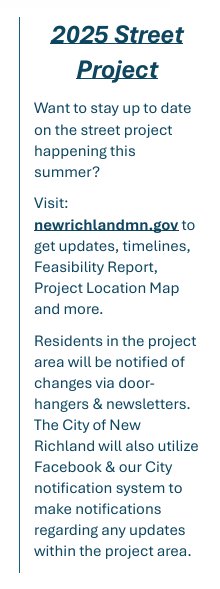 Welcome to the Official Facebook page of the City of New Richland, MN.