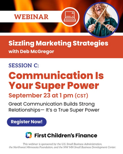 Join us for: Sizzling Marketing Strategies: Session C Communication is Your Super Power Tuesday, September 23, 2025 1-2 pm CST Free Virtual Training In child care, communication isn’t just a skill, it’s a superpower. Join expert Deb McGregor for an energizing session on how clear, confident, and intentional communication can: Strengthen connections with families Be deliberate and clear Inspire trust and elevate your business Whether you’ve attended the first two sessions in the series or not, this stand-alone workshop is packed with tools to help you lead with confidence. Register Today.