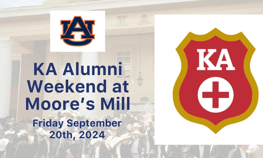 Alumni Weekend - Friday, September 20th 6pm Fellow brothers, we are excited to host this years alumni weekend again and build upon the event from last year. We have reserved Moore's Mill Club again for the Friday night before the Arkansas game for a cocktail party. Wives and girlfriends are welcome.