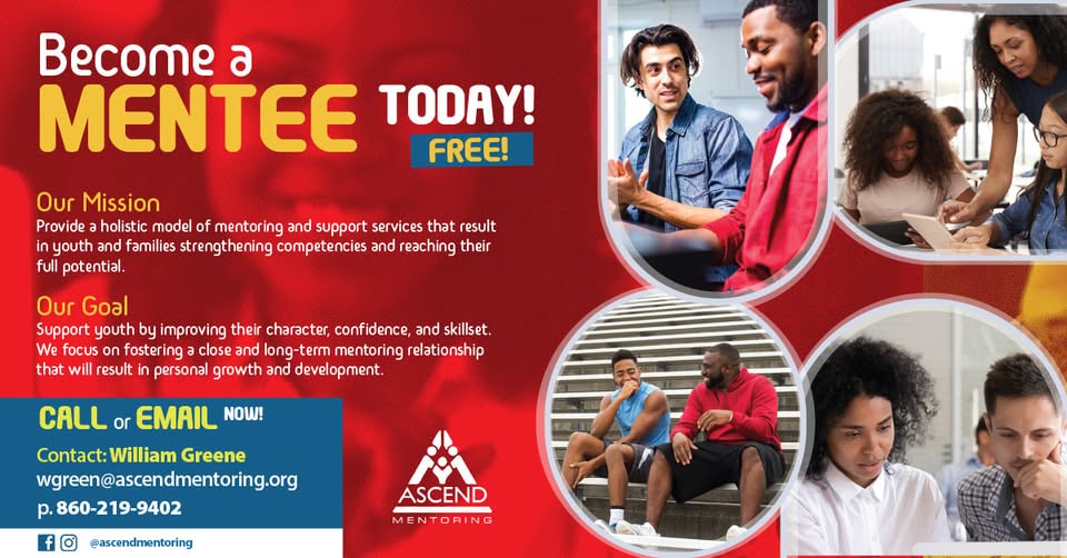 Ascend Mentoring Aspiring to a Brighter Tomorrow by Mentoring Today. Aspiring to a Brighter Tomorrow by Mentoring Today. Ascend Mentoring is a thriving organization that provides a holistic model of mentoring and support services that result in youth and families strengthening competencies and reaching their full potential. Ascend Mentoring Ascend serves youth between the ages of 1218 who currently attend Windsor Public Schools and provide a multitude of support services through strategic partnerships with local community organizations and corporatepartnerships around three areas of focus employment services mental health resources and financial planning.