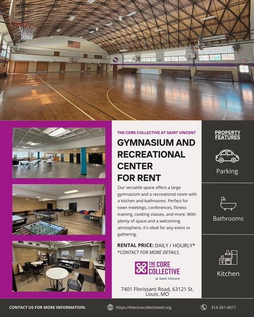 #DYK The Core Collective at Saint Vincent has a gymnasium and recreational center available for rent. Whether youβre planning a community event, fitness class, town meeting, or family gathering, our space is flexible, welcoming, and equipped with: β A large gymnasium β Recreational room with games β Kitchen and bathrooms β Plenty of parking π Located at 7401 Florissant Road, St. Louis, MO π‘ Available for daily or hourly rentals π Contact us today for details: 314-261-6011.