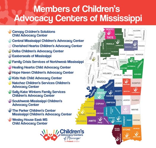 We are proud Members of the Children's Advocacy Centers of Mississippi. At our CAC, a child can relate their experience one time in one place, rather than being shuttled between doctors, police, counselors, and child advocates. We strive to provide a comfortable, child-friendly setting in which a child can feel safe while telling their story.
