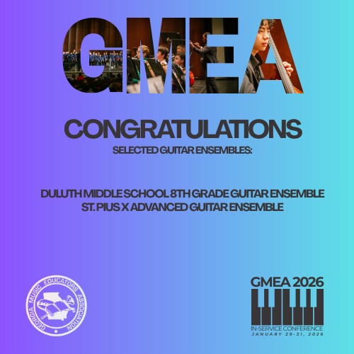 On this #TerrificTuesday, we get to recognize and CONGRATULATE the ensembles in the Guitar Division who have been selected to perform at the 2026 #GMEA In-Service Conference. Congratulations to the Duluth Middle School Guitar Ensemble in Gwinnett County Public Schools and St. Pius X Catholic High School (Atlanta, Ga) Guitar Ensemble.