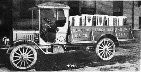 Before refrigeration, in order to keep foodstuffs cold and edible, ice companies delivered ice to homes and companies. This is a photo from the New Bern Ice Company showing how folks used to get ice back in the day. This picture is circa 1910-1916 and is of the New Bern Ice Company that was situated at North Craven Street.
