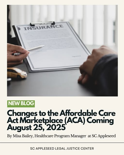 New at SC Appleseed | Changes to the Affordable Care Act Marketplace (ACA) Coming August 25, 2025 Major changes are coming to the ACA as a result of recent new rules and laws. In our new blog by Misa Bailey, Healthcare Program Manager at SC Appleseed, she discusses the upcoming August 25 changes to the ACA marketplace that you need to know. Read the blog here: https://www.