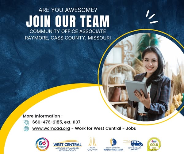 NOW HIRING: Community Office Associate 📍 Locations: Raymore & Belton, MO 💵 Starting Pay: $16/hour 🕒 36 hours/week • 4-day work week 📅 Start Date: Immediate 📌 Position #: 080725 COA Join the West Central team and help connect individuals and families with vital community resources. This full-time role serves as the first point of contact in our Raymore and Belton offices—supporting clients, maintaining accurate records, and ensuring our offices run smoothly. Strong people skills, professionalism, and comfort with basic computer programs are a must.