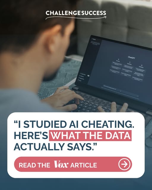 One of the most pressing questions we get asked from educators, parents, and schools we work with: should we be concerned about students using AI to cheat. 🧑💻 The good news is we have data, and the data helps tell a more complete story. 📊 Check out this new Vox article featuring our research with Stanford Graduate School of Education to learn about what the panic about kids using AI to cheat gets wrong.