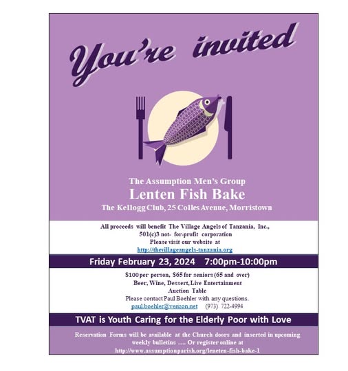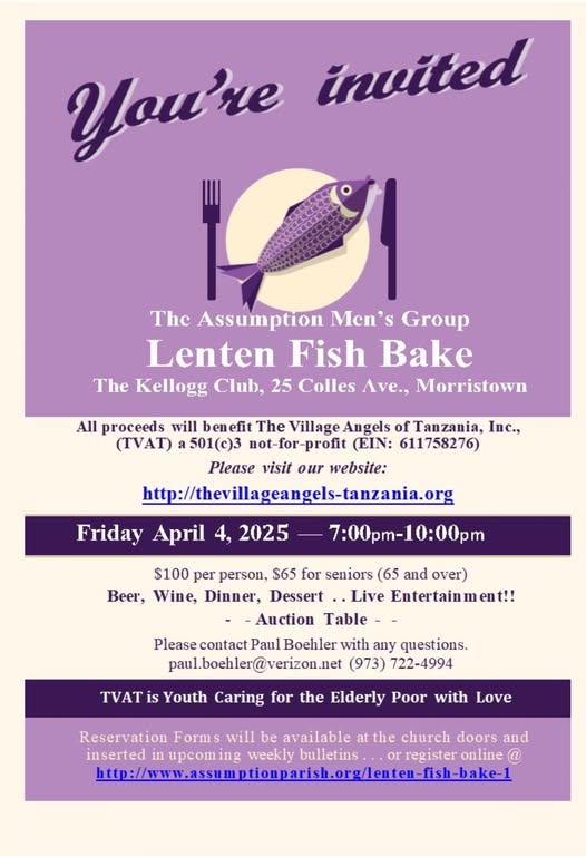 It's that time of year again . Our annual Fish Bake will be held on Friday April 4, 2025 at the Kellogg Club in Morristown. This fun event is our largest fundraising source for the Village Angels and helps sustain many of the wonderful projects within the village.