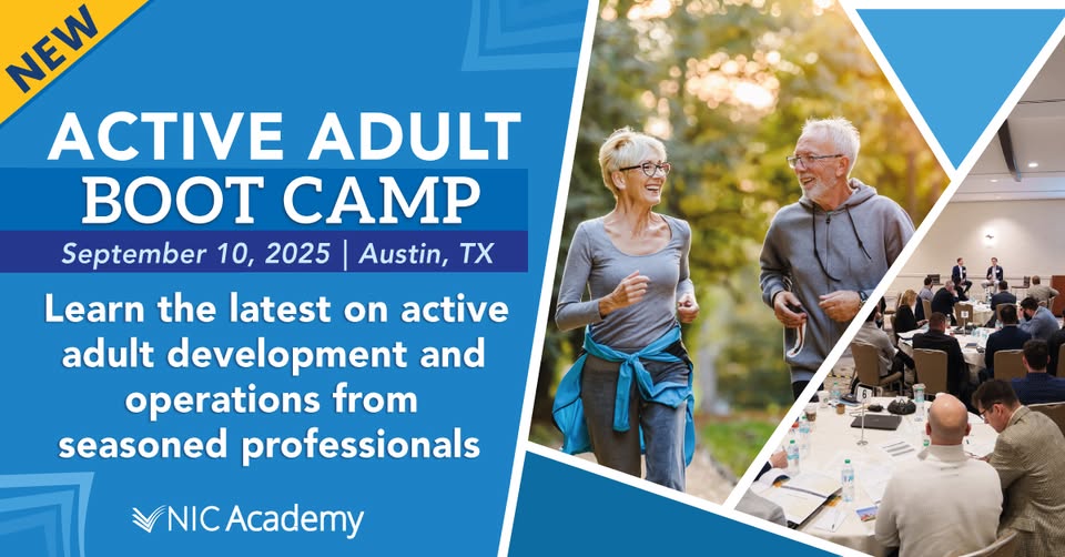 📢 We are excited to announce the first ever Active Adult Boot Camp taking place at the 2025 NIC Fall Conference. Join us September 10 in Austin, TX to learn the latest on active adult development and operations from seasoned experts. Learn more and register here: https://academy.