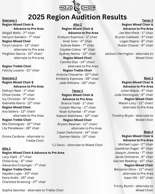 We are so proud of our students who competed at the TMEA Region Choir Auditions this weekend — they represented Permian High School with excellence, professionalism, and pride. 🖤🐾 We had 48 students place in the Region choirs, with 29 of them advancing to the 3rd round of the All-State process. These students continue to set a high standard of dedication and musical excellence.