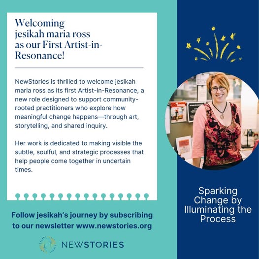 ✨ Big news. We're welcoming jesikah maria ross as NewStories' first Artist-in-Resonance. As communities face escalating challenges, loneliness, polarization, and disconnection, we believe this moment calls not just for better outcomes, but for better processes: ways of seeing, gathering, imagining, and co-creating that deepen people’s connection to one another and to the places they call home.