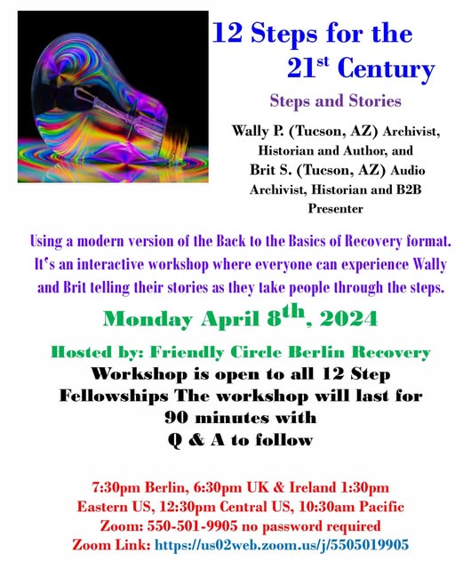 AA Back to Basics - It's all about saving lives! Back to Basics P. O. Box 91648 Tucson AZ 857521648 520 2979348Office 520 2977230FAX Emailadminaabacktobasics. org Monday meeting in Salinas CA is now a ZOOM meeting.