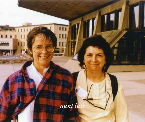 Happy Birthday, Gloria Anzaldúa. This photo was taken at the historic Montreal Women's Book Fair in 1988–just ONE YEAR after Anzaldúa's book, Borderlands: La Frontera, was published by Aunt Lute Books. On the left is Joan Pinkvoss, co-founder of Aunt Lute Books, and on the right is Gloria Anzaldúa.