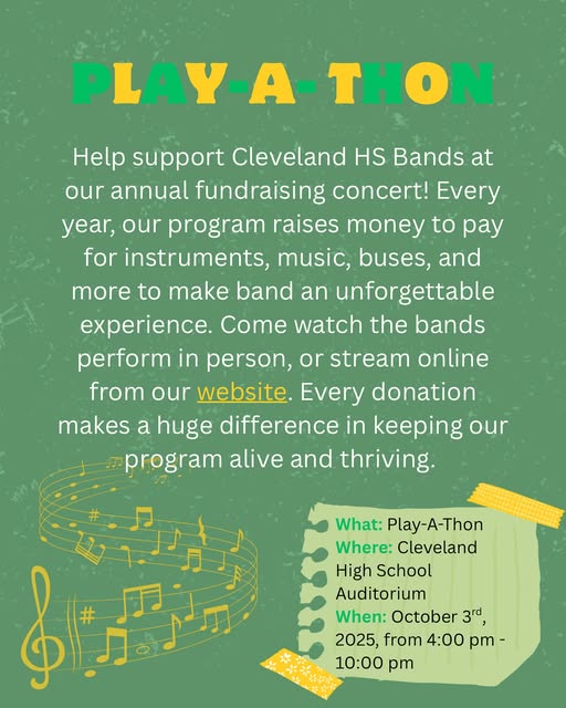 All things Cleveland HS Bands BUILDING COMMUNITY OF STUDENTS AND FAMILIES WITHIN THE BAND PROGRAM AND CELEBRATE THE BAND EXPERIENCE.