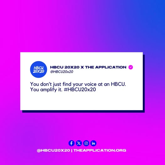 HBCU 20x20 - THE HBCU 20X20 FOUNDATION The Application One Application At A Time. Find Your Next Opportunity Welcome to the home of The Application and HBCU 20x20. We are the nations leading free resource for academic and career access. Our community of 25000 and growing represents 60 Colleges and Universities k12 school districts and 600 corporate partners committed to our mission.