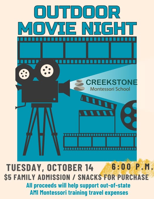 Join us for a night of community, fun, and support - all proceeds will help cover expenses for two of our elementary lead guides to attend the required onsite, out-of-state portions of their AMI Montessori training. $5 Admission. Concession Snacks for Purchase.