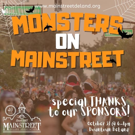 🎃 We’re getting ready for another spooktacular night in Downtown DeLand. 👻 Monsters on MainStreet wouldn’t be possible without the generous support of our incredible sponsors who help us bring community events like this to life: • Hounds Town DeLand • Climate Control Florida • Grifols Biomat Deland - Plasma Donation Center • Cobb Cole Law Firm Their contributions help MainStreet DeLand Association continue hosting family-friendly events that keep our downtown vibrant, welcoming, and full of life. Join us Friday, October 31 from 6–8 PM for trick-or-treating, activities, and plenty of Halloween fun in the heart of Downtown DeLand.