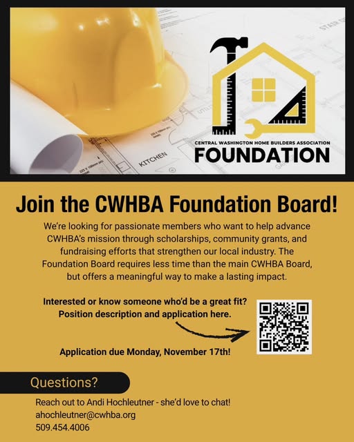 🚧 Join the CWHBA Foundation Board. 🏗️ Passionate about making a difference in our community. The CWHBA Foundation is looking for members who want to help strengthen our industry through scholarships, community grants, and local fundraising efforts.