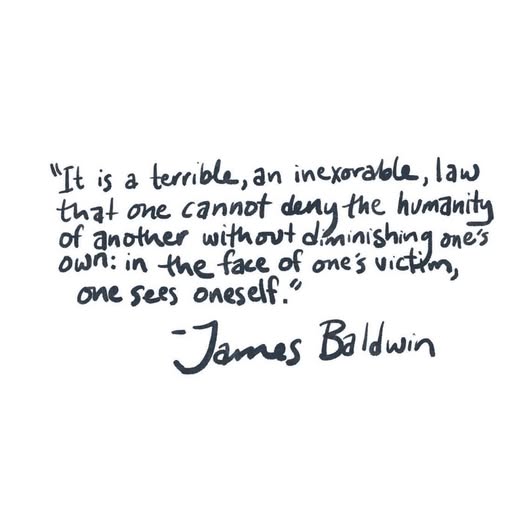 "It is a terrible, an inexorable, law that one cannot deny the humanity of another without diminishing one's own: in the face of one's victim, one sees oneself. " ~James Baldwin August 19th is World Humanitarian Day. Find your humanity, and others will follow.