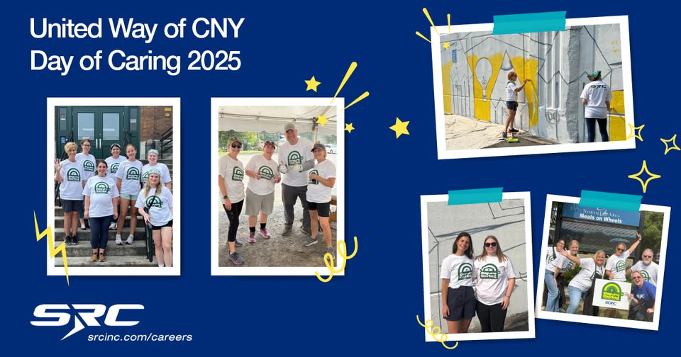 SRC was proud to be a presenting sponsor of the United Way of Central New York 's Day of Caring 2025. 💪 Our employees rolled up their sleeves to paint and clean at the Museum of Science & Technology - MOST , help Clear Path for Veterans set up for their Back to School Festival, meal prep with@Northareamealsonwheels and help complete the Day of Caring mural. We're grateful for the opportunity to make a meaningful impact, together.