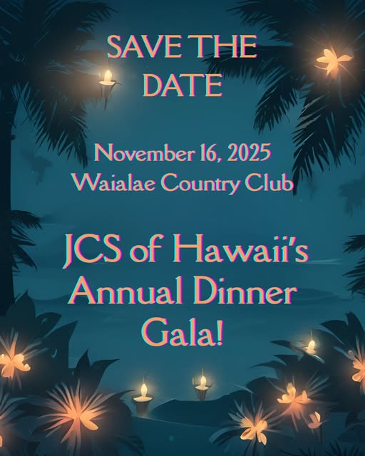 🌺 Save the Date 🌺 You are cordially invited to JCS of Hawai‘i’s Annual Dinner Gala 📅 November 16, 2025 📍 Waialae Country Club An evening of celebration, community, and compassion awaits. For now, mark your calendars. Details to follow in the near future — we look forward to sharing this special night with you.